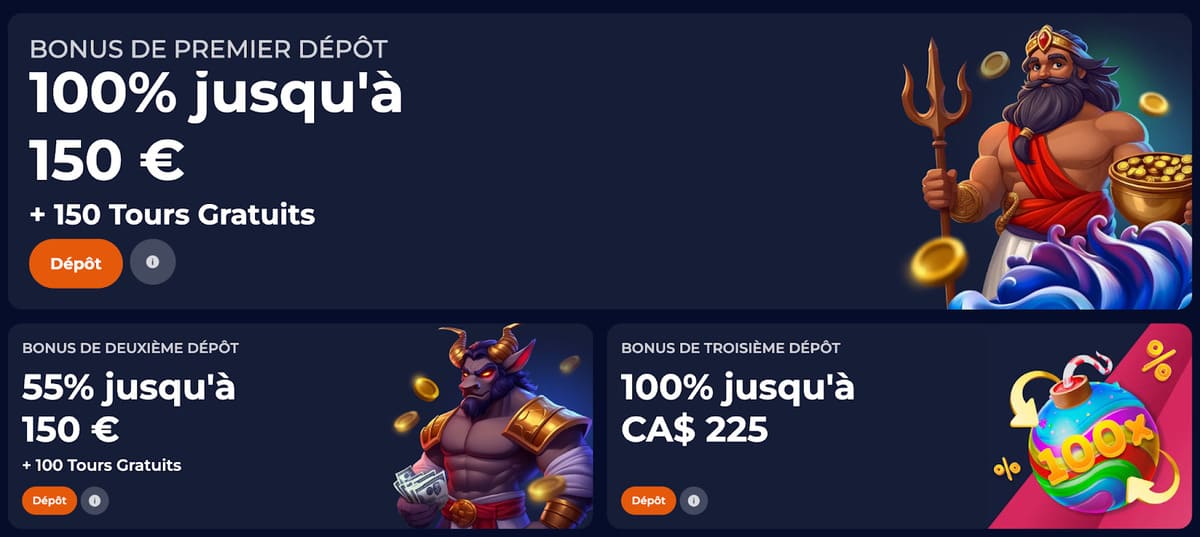 | Welcome Bonus | Up to €150 + 250 Free Spins |